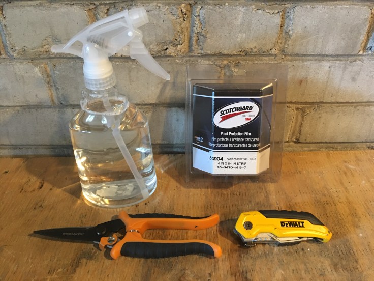 Step 1: It’s important to start with a clean surface when applying the protective film. Using a cleaner like Simple Green All Purpose Cleaner will ensure that bugs/tar/dirt are removed and that you’ll get good contact between the film and the body panels. Just make sure you wipe the surface clean and don’t leave any residual cleaner on the panel.