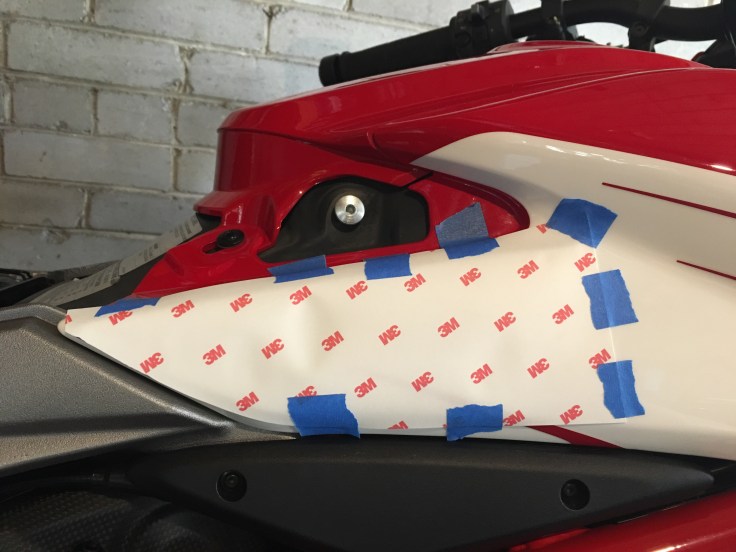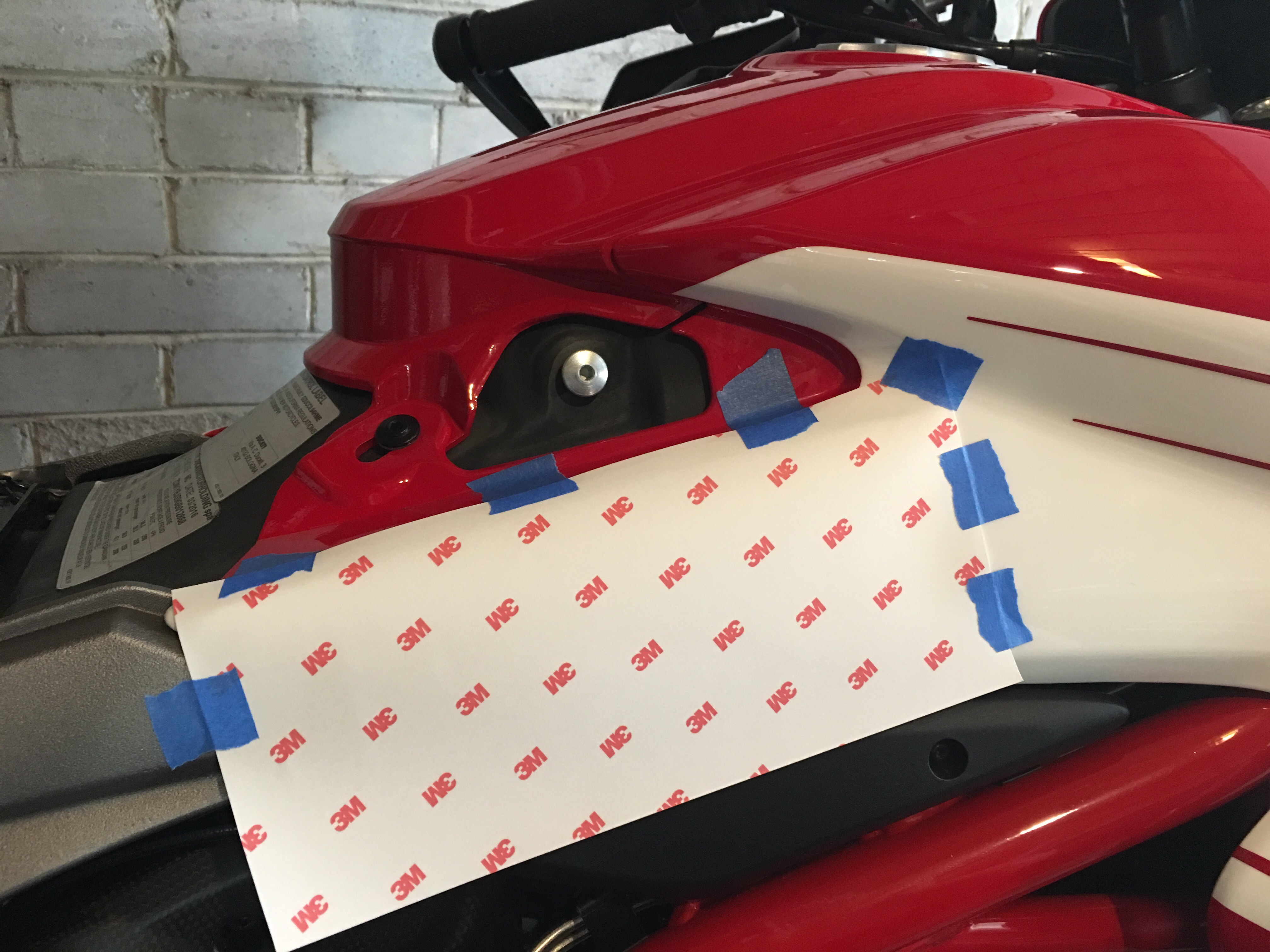 The narrow profile of the Hypermotard encourages a rider to grip the tank panels with his knees. Problem is that those glorious, shiny tank panels scuff easily which is why we developed this simple and affordable DIY.