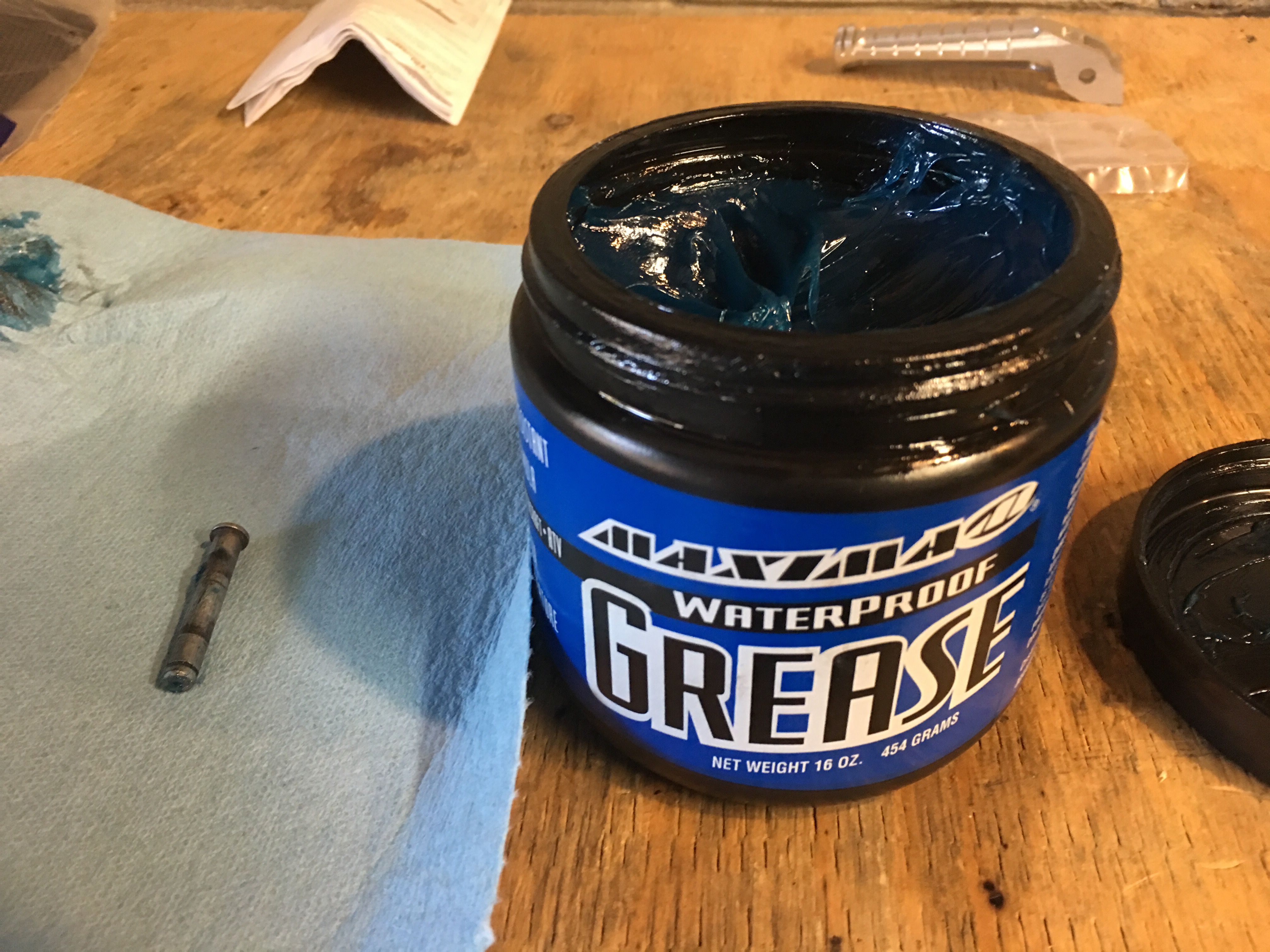 Step 3: With the pins extracted, it’s a great opportunity to clean and re-lubricate the mechanism. This will ensure smooth action if the peg needs to fols up and has the added benefit of making it easier to get the pin back through in the next step. A good wipedown and the re-application of some waterproof all-purpose grease does the trick.