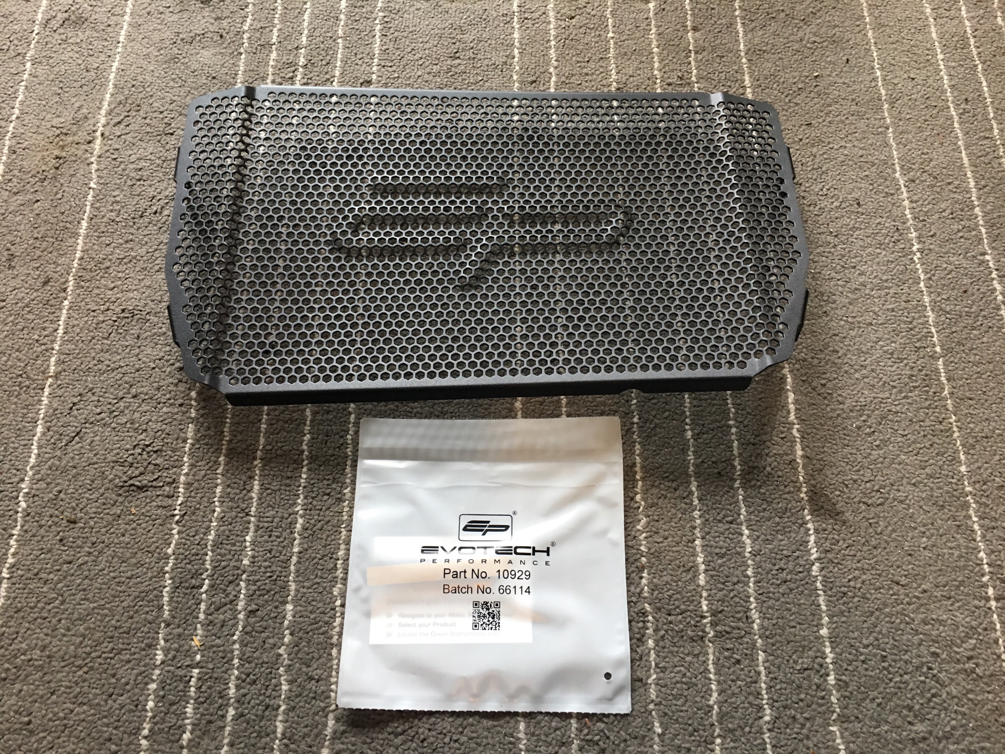 We’ve done over 6,000 kms on the Hyper and it’s becoming obvious that the sexy (short) carbon front mudguard doesn’t keep rocks and debris from hitting the radiator and front of the engine. Installing some simple guards such as Evotech’s Radiator and Engine guards should provide the protection we are looking for, as seen in this simple DIY.