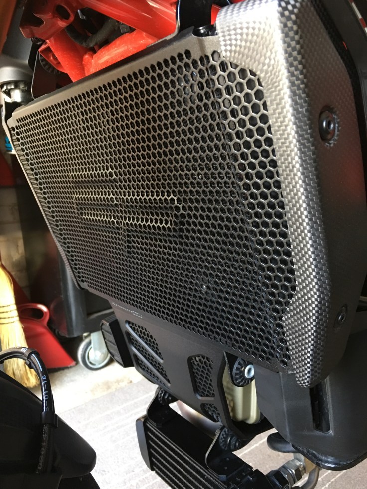 The guards can be purchased separately or as a complete set (there are 3 in total: radiator, engine and oil cooler) and although you could probably run a bike for tens of thousands of kilometers without adverse mechanical effects, for aesthetic purposes alone, we think this is a mod worth doing.