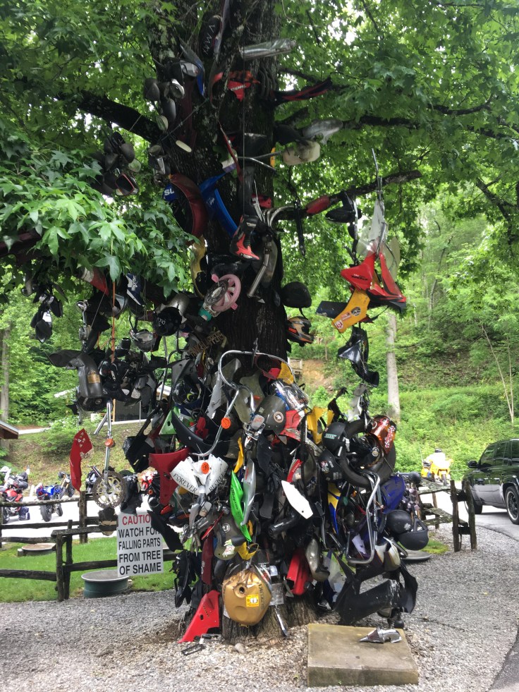 • Check out the “Tree of Shame” (but don’t contribute to it!):If you need proof that people crash a lot on TOTD, look no further than the Tree of Shame which is conveniently located at the southernmost end of TOTD, in the parking lot of the Deal’s Gap Motorcycle Resort.