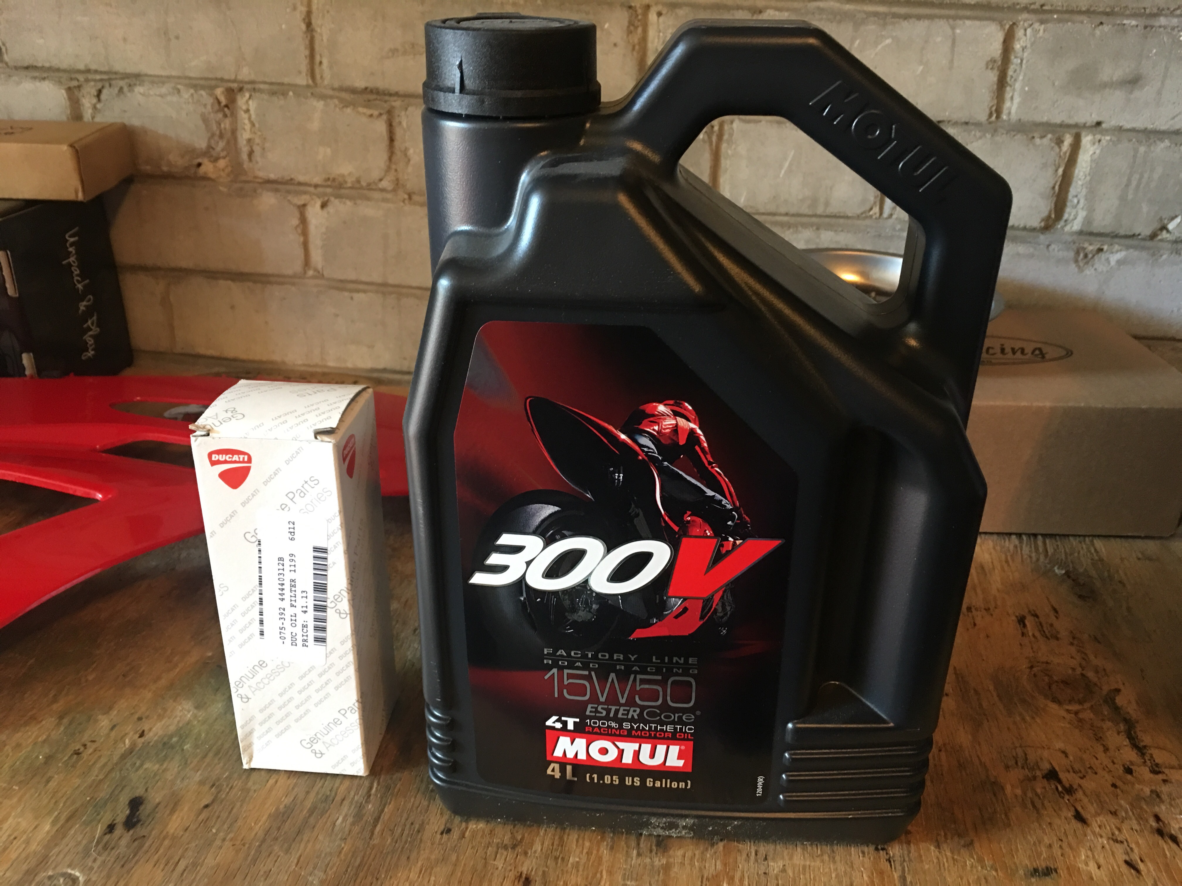 As with any oil change, you’ll need your choice of (preferably) synthetic oil, along with a new oil filter. In terms of oil viscocity, the Panigale range can take anything from 10W40 to 20W50 depending on your climate so best to check your owner’s manual. Also note that the oil filter for the Panigale is an internal filter whereas most other Ducatis use an external (screw-on type) filter. More on that later.
