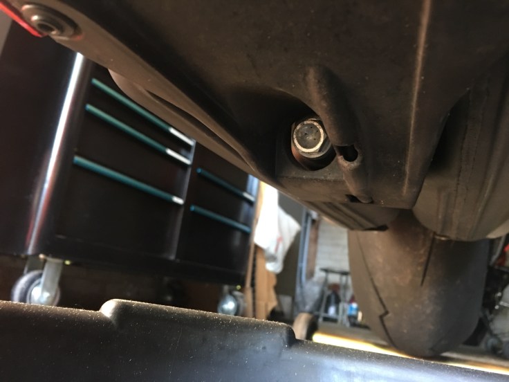 The first thing you’ll want to do is remove the lower left fairing (as that’s where the oil filter is located), then either take the bike for a 5 minute ride or let it idle to heat and circulate the oil. If you don’t perform this step, the oil won’t drain properly as oil is thicker when it’s at ambient temperature (vs at operating temperature). You also want to circulate the oil so that any sediment is brought into suspension so you can get it out.
