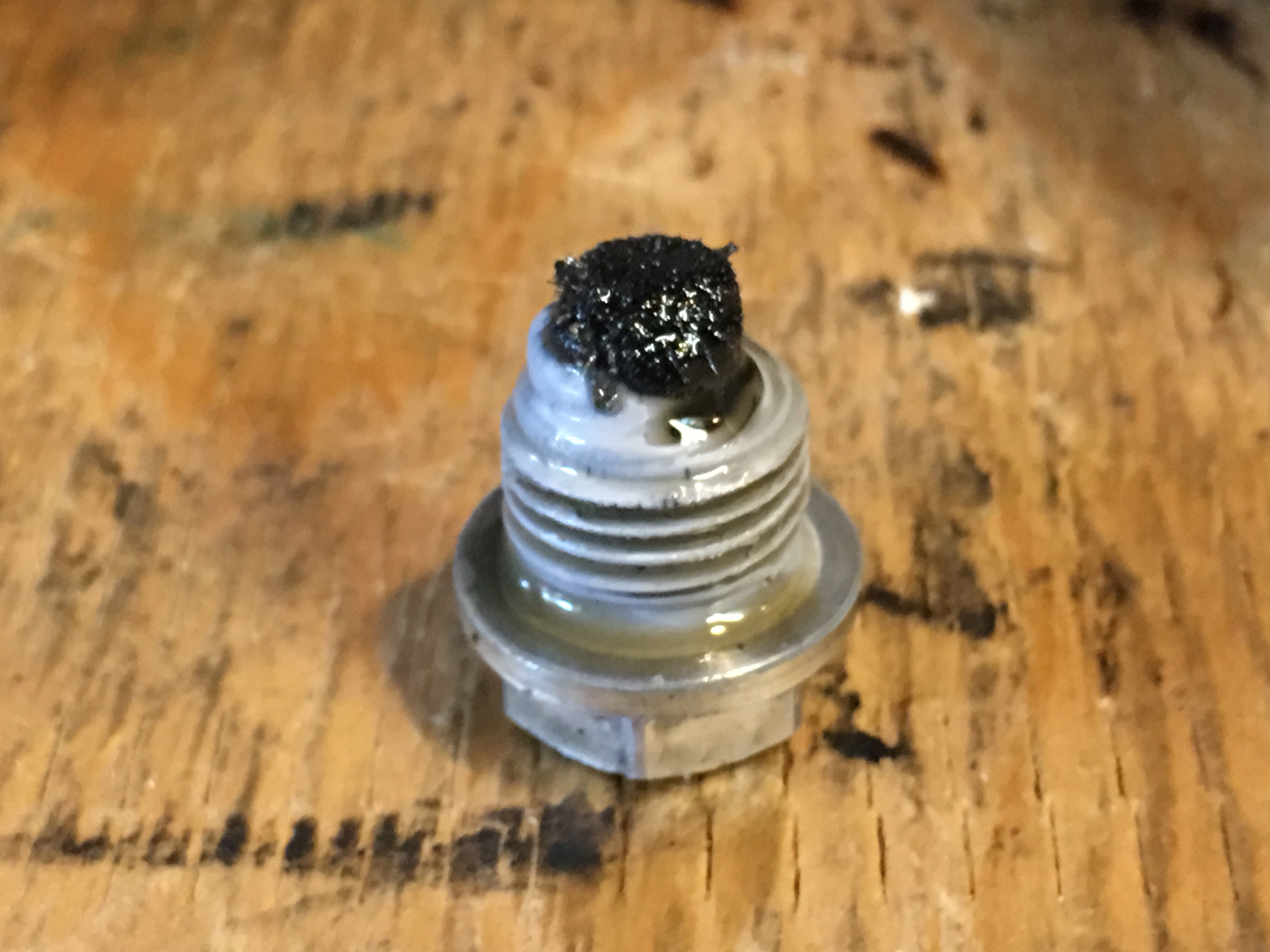 While the oil drains, take a look at the drain bolt and remove any metal debris that may have accumulated on the magnetic tip. There may also be a copper crush washer between the drain plug and the motor so be sure to examine it for wear and replace it if there’s any doubt.