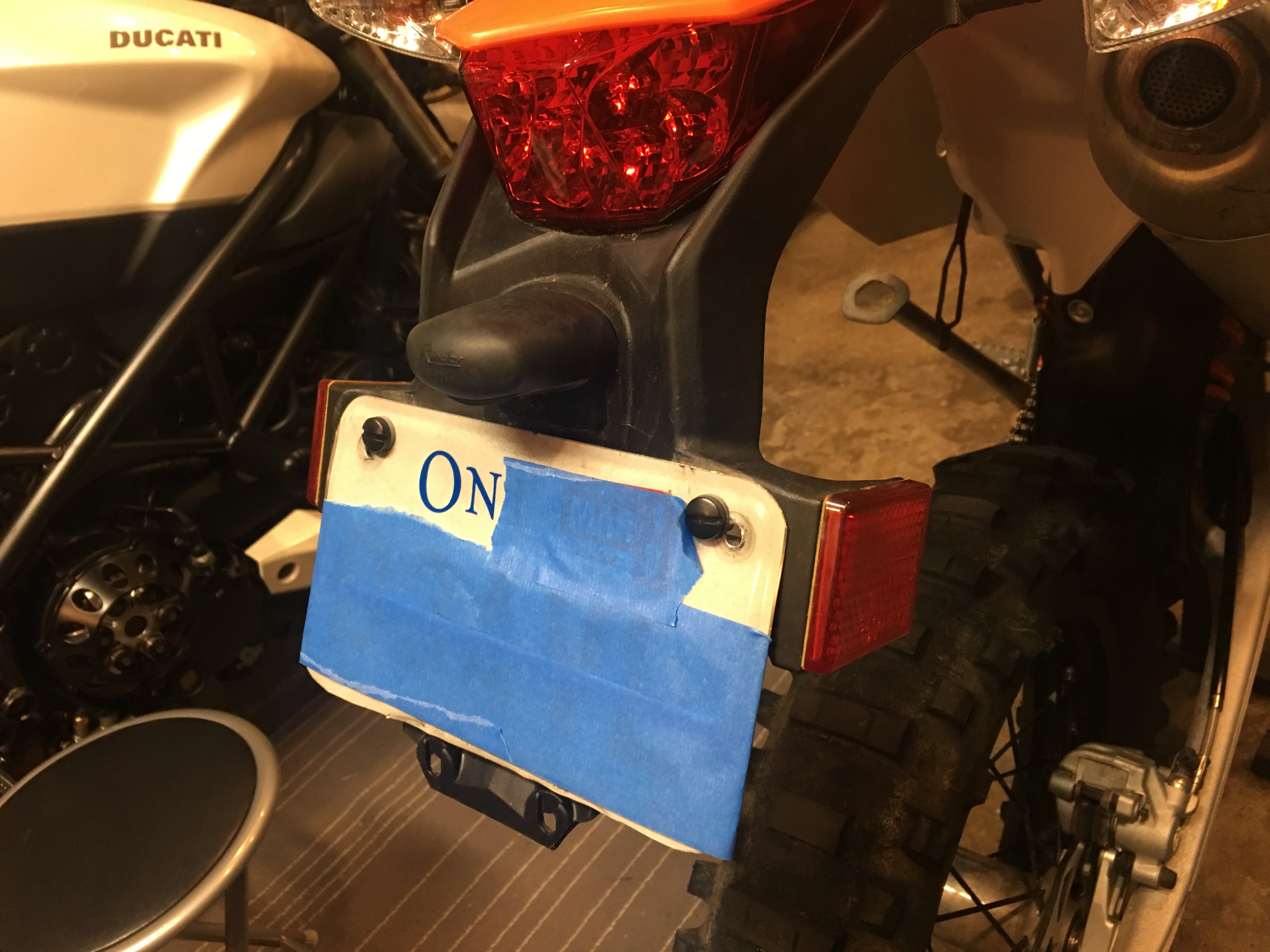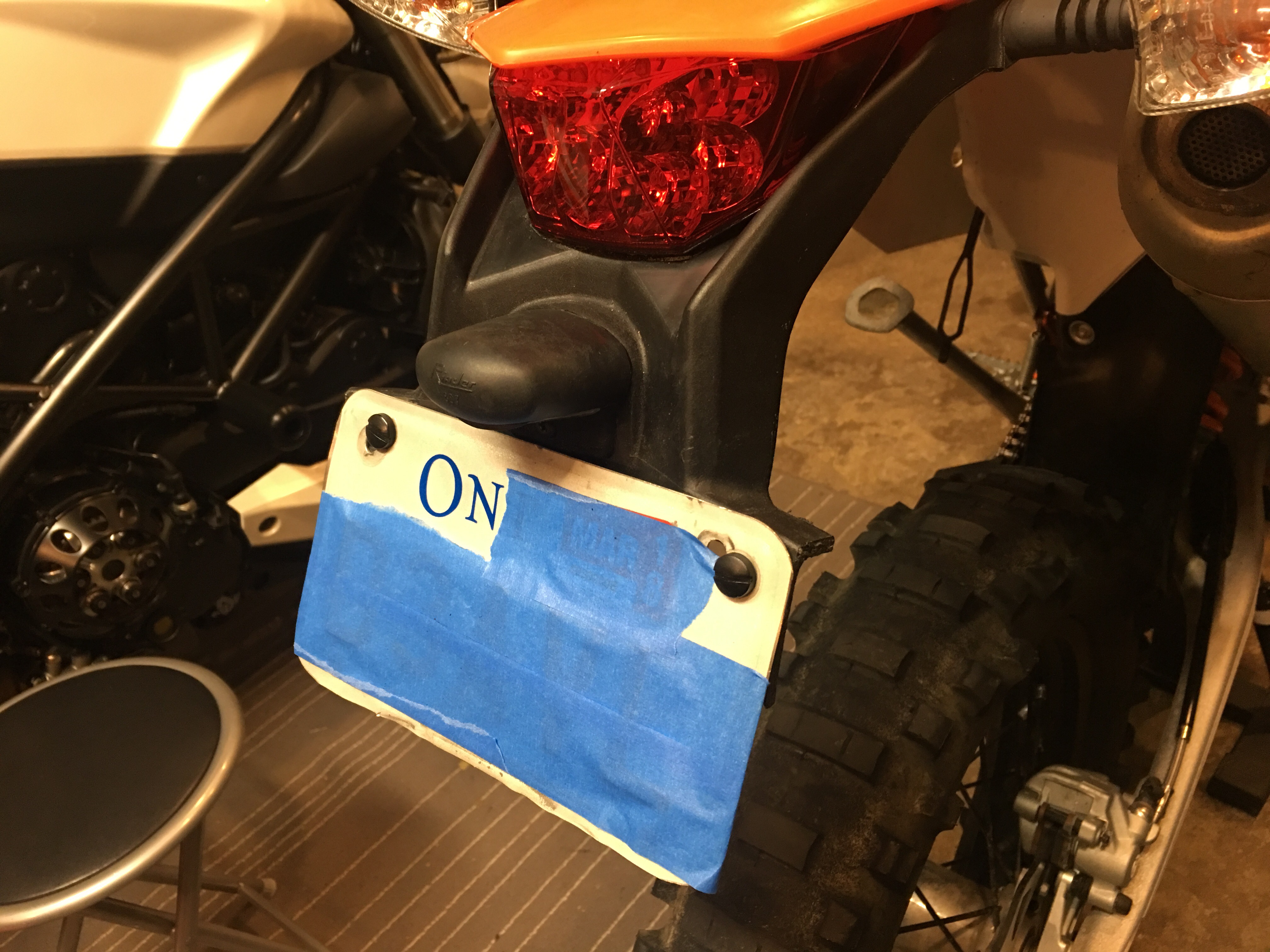 The Sweet: With the sticky street rubber and the 500 EXC’s torque and light weight, the bike handled like a dream on tight, twisty roads. 2nd and 3rd gear (<100 km/h) were where the bike was the happiest, its plentiful torque able to loft the front end on command, transitioning effortlessly from side-to-side and backing into corners with total confidence. Surprisingly, the front end (wheelie-prone-ness) calmed down a bit (vs its stock form) with the addition of the heavier wheel/tire combo and with the suspension stiffened up, allowed for the bike to be ridden either supermoto style (leg out) or GP style (knee out). Around town, the bike was incredibly agile, a real head-turner and a joy to commute on.