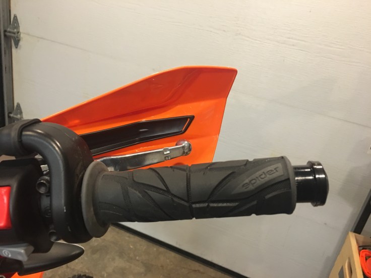 Kickstand: Lastly, a shorter kickstand was required due to lower overall wheel/tire profile. KTM part #78003123044 was the right height (an alternative is to cut the stock kick stand but we elected to keep that for dirt setup). We decided to keep the stock gearing (15-45) for the moment and make adjustments later once initial impressions settled in.