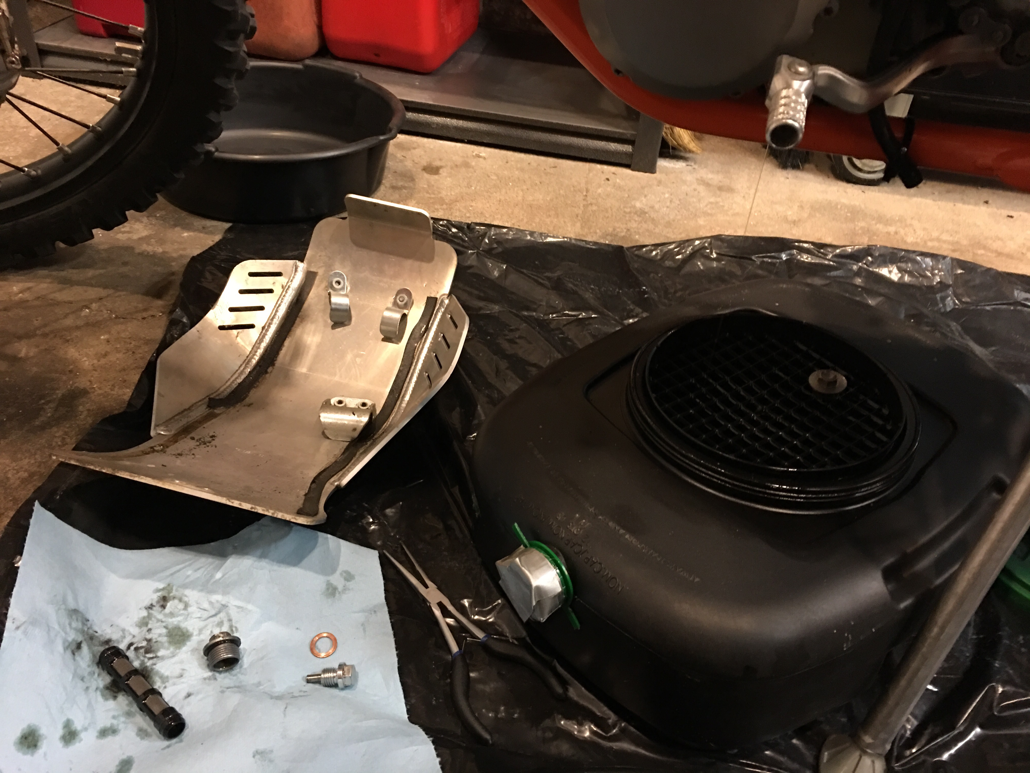 Oil Change: The last mechanical step to getting the bike into top shape was to change the oil. In this case, full synthetic Motul 7100 is the fluid of choice in the 15W50 variety. The oil change procedure is fairly simple on the EXC range (see our motorcycle oil change guide here) but does require the removal of the bash plate (for those who run one). Oil capacity is 1.5L so a 5L jug should be good for at least 3 oil changes. Oil filter options include KTM part #77038005044 or the K&N-655 (among others).