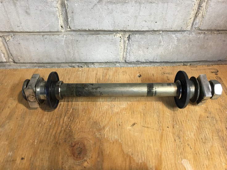 Step 3: Put the rear end up on a stand, then pull the rear axle out and take note of the various spacers and blocks, specific to your bike. A handy tip is to thread all the components back on the axle, making it easy to remember what goes where, especially if you plan on completing the project over multiple day (or beverages).
