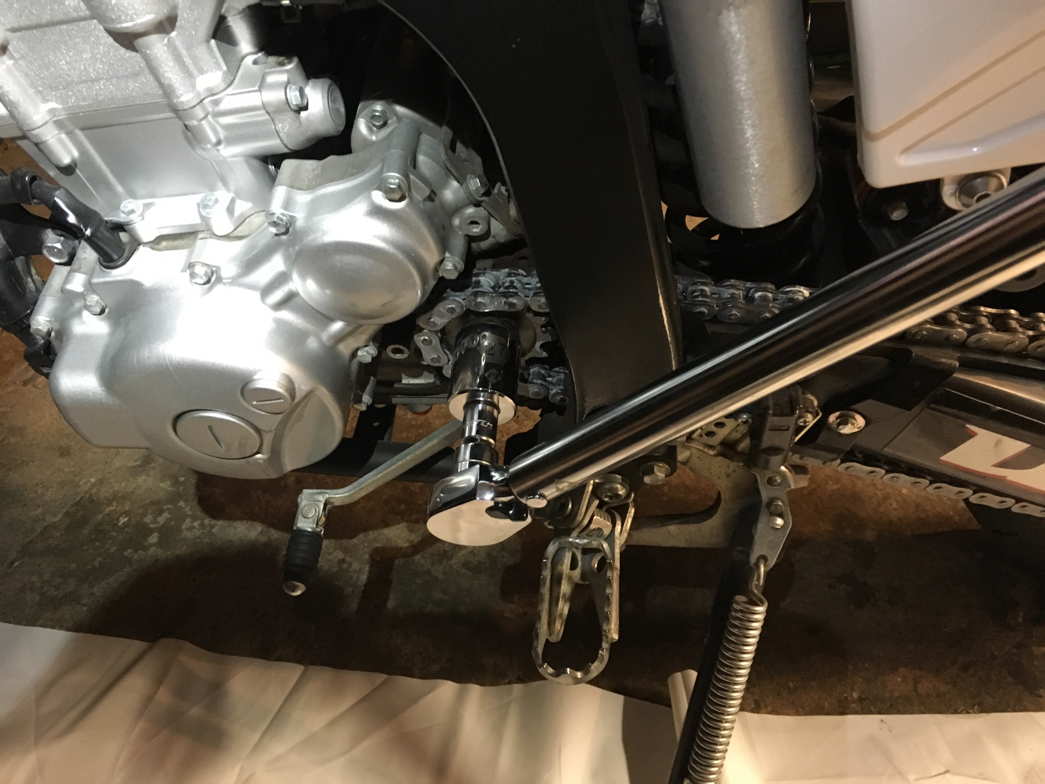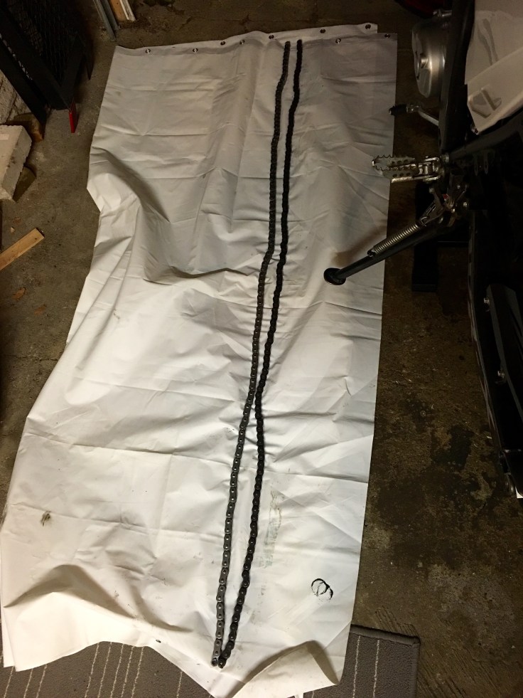 Next, run the chain over the drive shaft (making sure to route it behind the frame and swing arm) and pick a spot on the chain return (lower part of the chain) so you can join both ends with the master.
