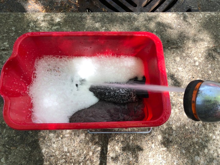 - Before putting away your water source, dispose of the soapy water in your bucket, squeeze out the wash mits and give all your cleaning tools a good rinse so they are ready for next time
