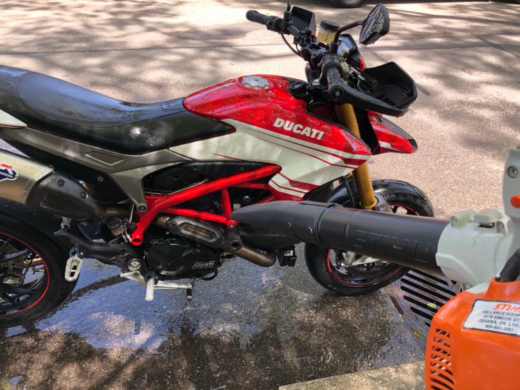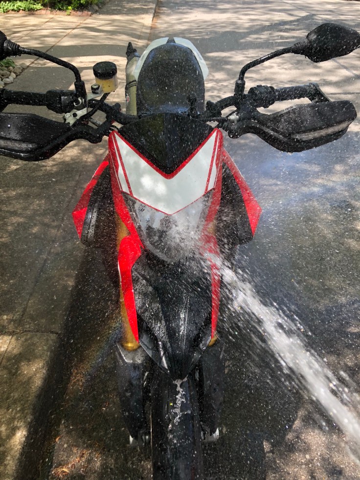 - Get water into every crevisse possible, paying particular attention to dirty areas such as under the fender(s), the radiator, tail, under the motor, etc