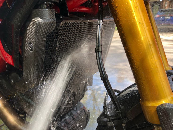 - If your bike has chain final drive, avoid spraying the chain directly, especially with a high pressure hose