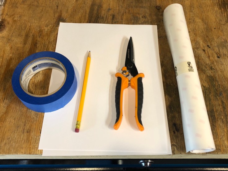 Place a blank sheet of paper on the desired coverage area. You can trim the 8.5 x 11 paper roughly to get a basic fit, then use the masking tape to secure the paper and trace the outline of the desired protector shape with the pencil.