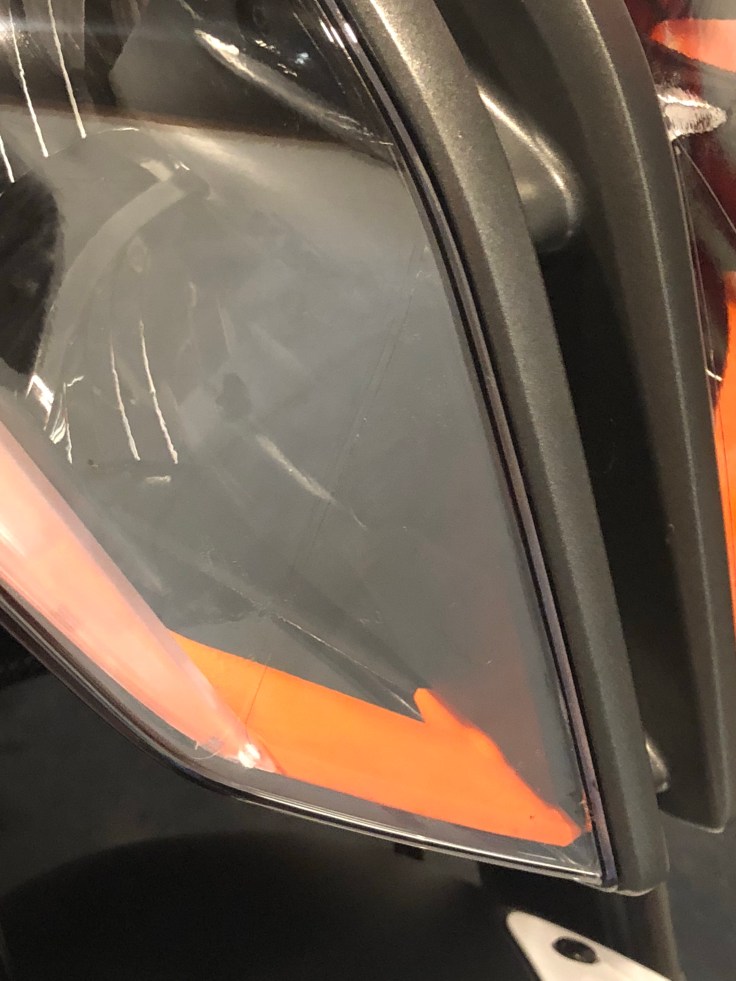 The headlight is another good place to apply clear protective film as it will take a beating from stone chips. Covering it can be done in a variety of ways but we recommend dividing the headlight into 4 sections for easier application of the film and using the wet application method.