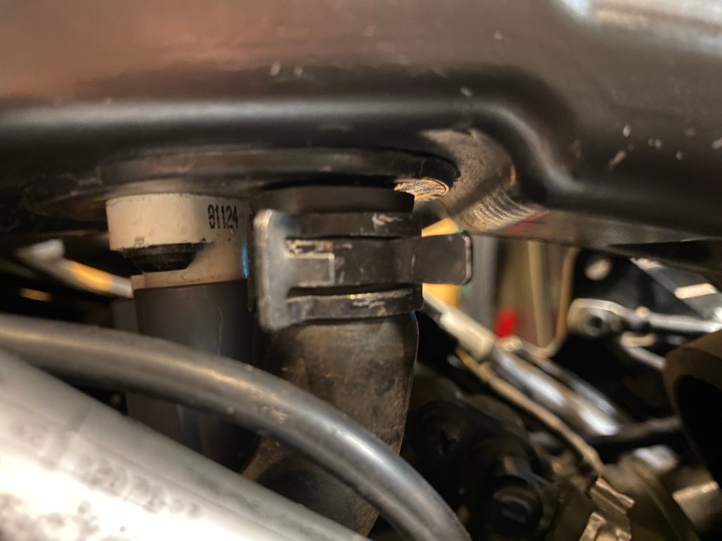 You can now disconnect the 2 breather hoses from the valve cover. You may need to cut a few zip ties and pull the hoses out of the way through the frame as getting the valve cover off and out is a tight fit.