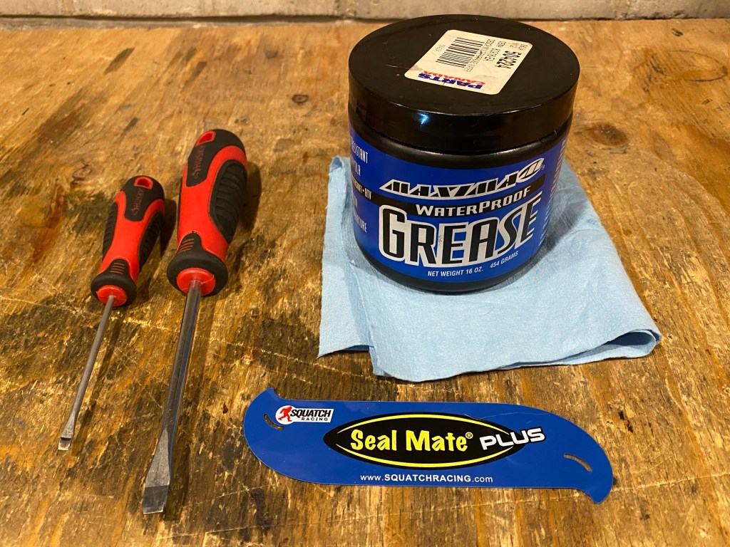Seal Mate, Seal Mate Plus (available on Amazon), small and medium size flathead screwdrivers, grease, shop towels, WD40 or other spray lubricant (optional).