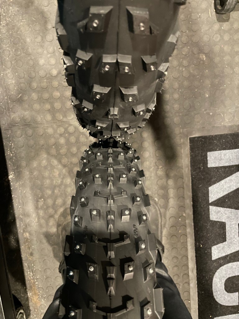 When the conditions get gnarly and there is ice or wet snow, studded tires help even the odds and can offer summer-like levels of traction. I didn’t believe it until I tried it but they allow the bike to corner as if it were on rails while riding on very slippery terrain.