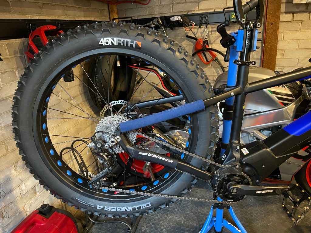 If you’ve wrenched at all on motorcycles, then working on eMTBs is a breeze. They are simple in comparison and require very little maintenance. Changing/swapping tires, lubricating the chain and charging the battery are the most frequent items and are easily picked up. Tools are pretty standard as well (mostly hex keys) and an inexpensive bike stand makes it even easier to perform maintenance.