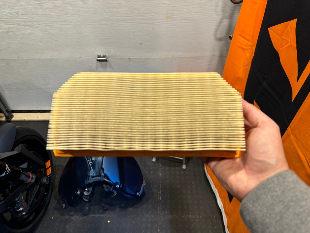 1. Funny you should ask – I just did the filter swap on an ‘18 RSV4 track bike. Removing the track fairings is obviously quite a bit easier than the street bodywork. The main difference on that bike is that you don’t need to remove the tank and can simply cantilever it, disconnecting the front and using the back as the pivot point. That airbox is held together with screws so remove the ones at the front, then pull the airbox cover up enough to access the filter and replace it. Easier job than on the 1290 SDR due to that.