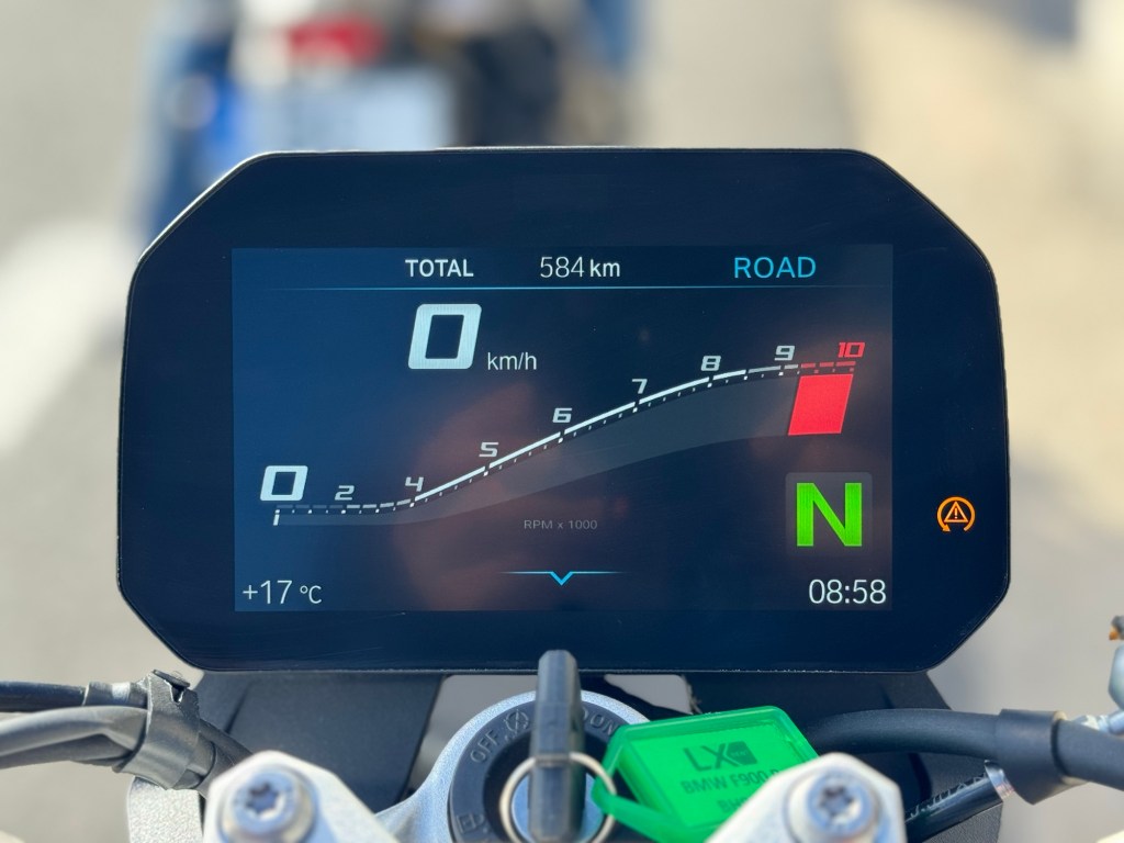 Being an auto manufacturer, BMW extends its pricing and packaging philosophy to its motorcycles. As such, the F900R can be kitted out with a variety of electronics packages which enable functionalities such as additional ride modes, electronic shock adjustment, an up/down quick shifter and advanced traction control. Our base model featured none of that however, simply providing a 5” TFT display (with a matte coating, which looked great) that’s shared across all trim levels, 2 ride modes (road and rain) along with traction control which could be disabled and ABS which could not.